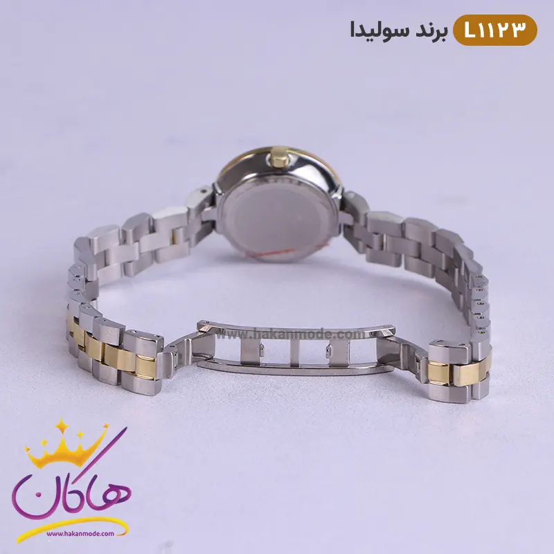 قفل ساعت مچی زنانه سولیدا نقره ای طلایی صفحه سفید کد L 1123
