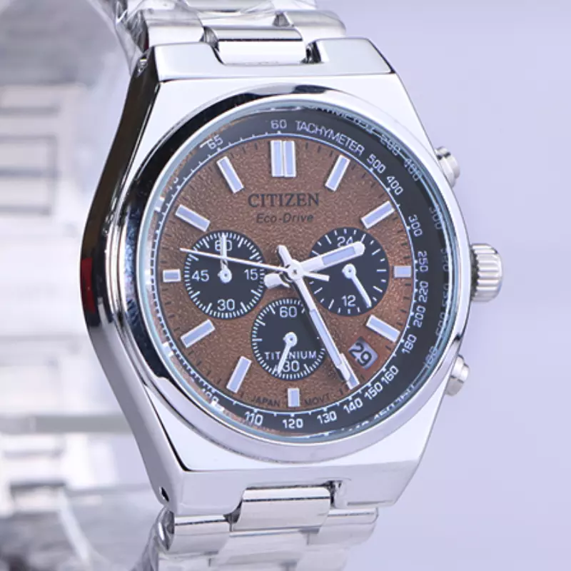 ساعت مچی سیتیزن زنانه فلزی ظاهری مدرن و جذاب دارد. این ساعت استیل نقرهای، رنگ ثابت و ضدحساسیت است. در واقع این ساعت، طرح سه موتوره است و صفحات مشکی کوچکی که میبینید، نمایشی هستند. عقربهها، شبنما و اندکسها خطی و شبنما هستند. اگر به درون صفحه قهوهای ساعت نگاه کنید، نام برند Citizen زیر ساعت 12 دیده میشود. یک مربع کوچک بین اعداد 4 و 5 قرار دارد که همان تقویم ساعت است. در کنار صفحه یک پیچ کوک برای تنظیم زمان وجود دارد. بند ساعت، فلزی و از نوع استیل مرغوب است که باعث تعرق و خارش نمیشود. این بند از بافت ریز و درشت تشکیل شده که نقرهای رنگ است. قفل ساعت از مدل پروانهای دکمهدار است که از دسته قفلهای محکم و مطمئن است.