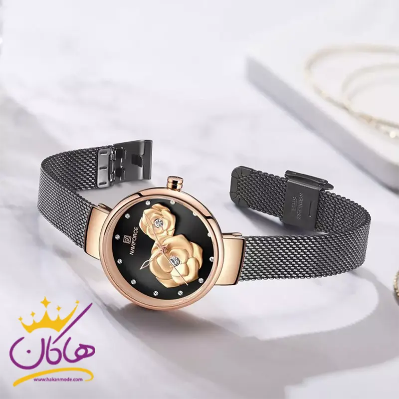 بهترین قیمت ساعت نیوی فورس زنانه استیل مشکی رزگلد