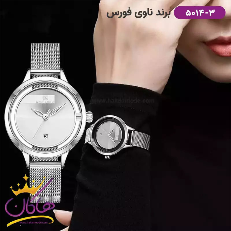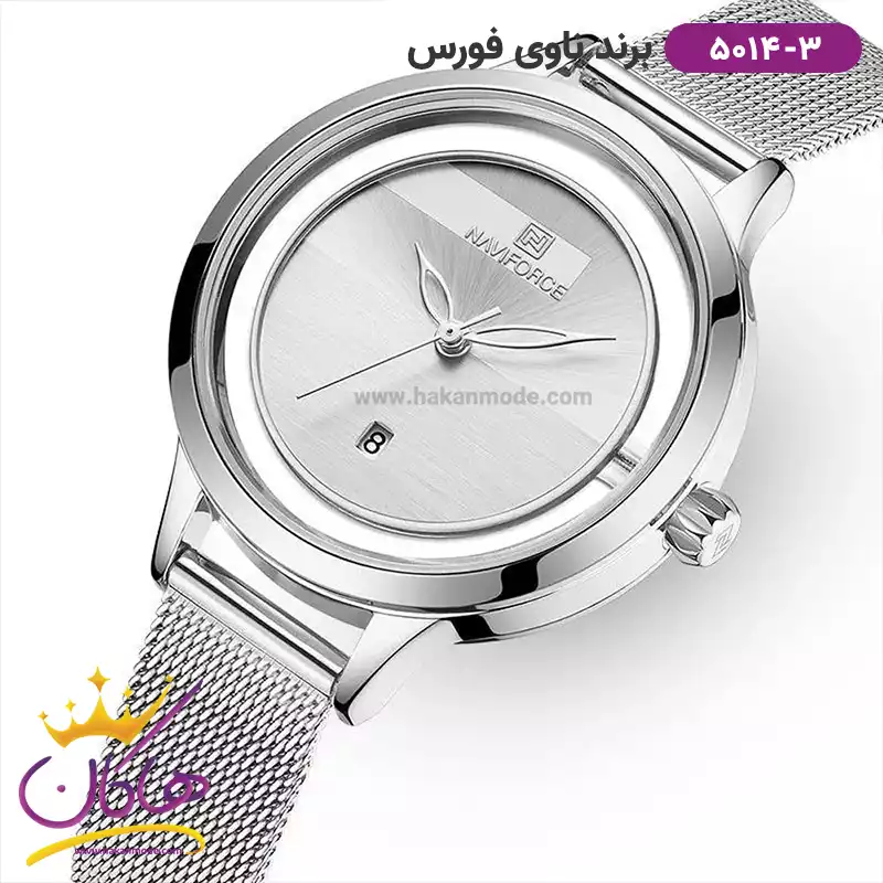 ساعت مچی زنانه نیوی فورس نقره ای بند حصیری 5014/3