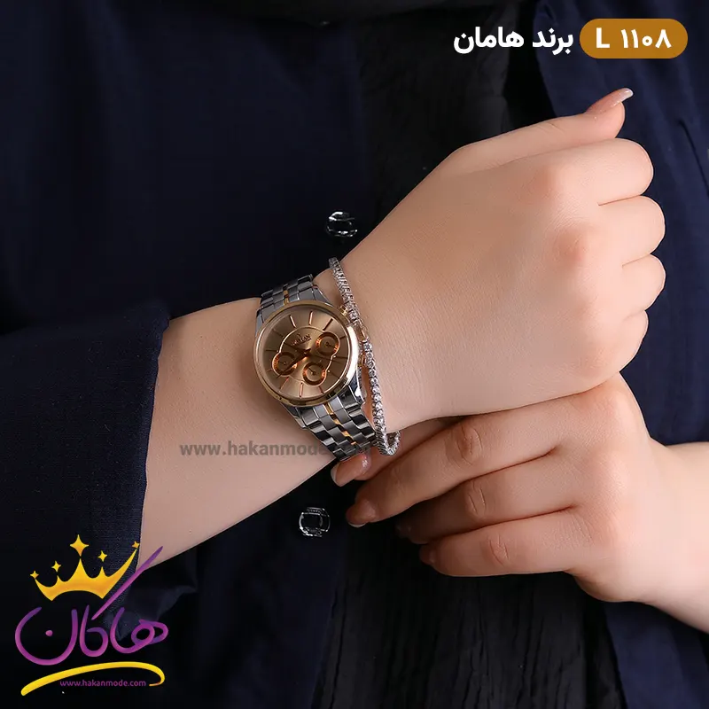 قفل ساعت مچی زنانه هامان بند نقره ای رزگلد 1108/12