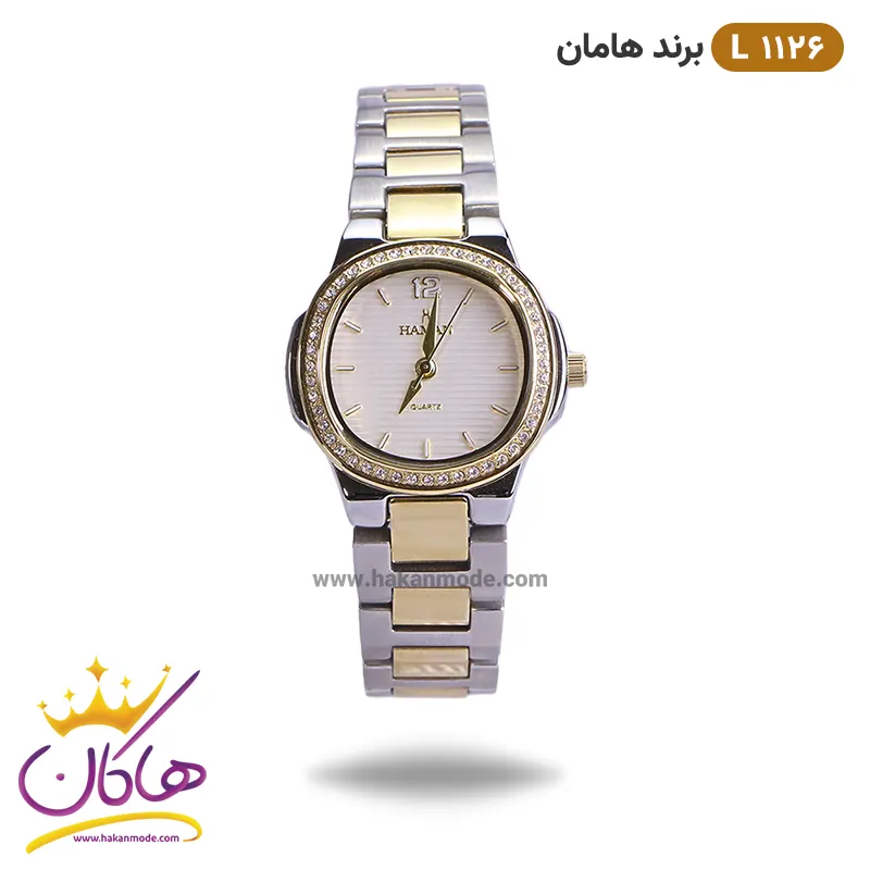 بند ساعت مچی زنانه هامان طلایی نقره ای قاب نگین 1126/3