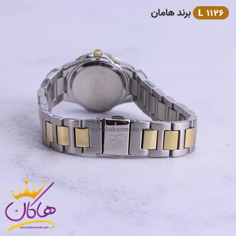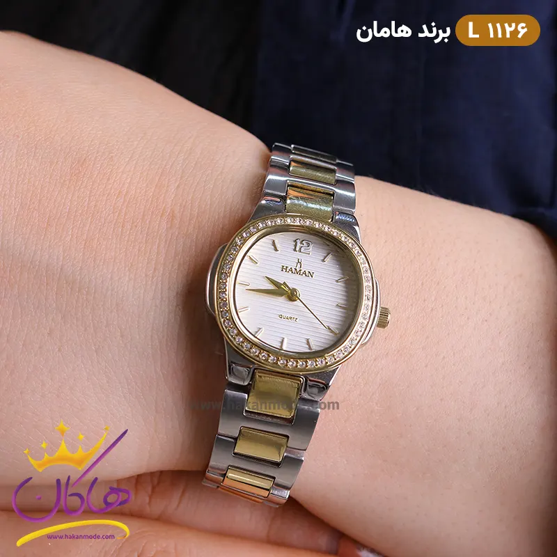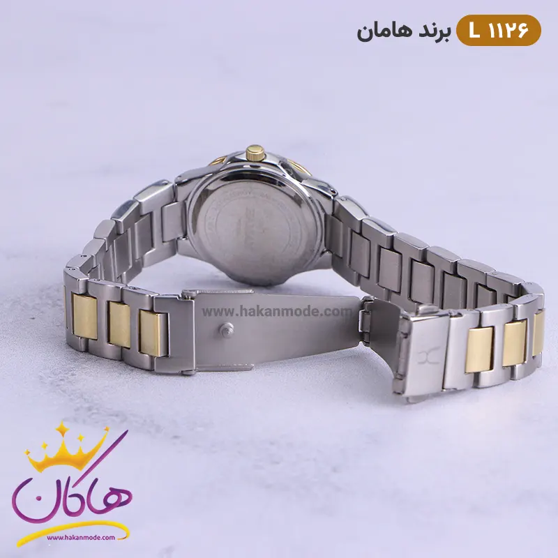 قفل ساعت مچی زنانه هامان طلایی نقره ای قاب نگین 1126/3