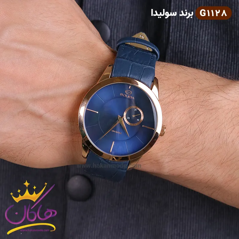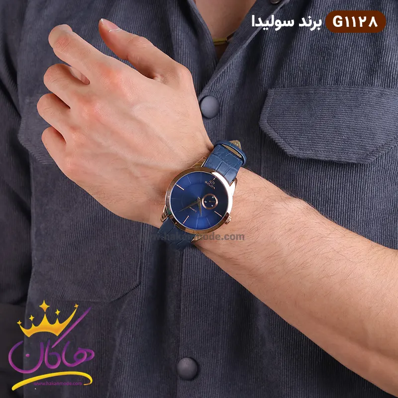 ساعت مچی ست زنانه و مردانه سولیدا سورمه ای کد 1128 مردانه روی دست مدل