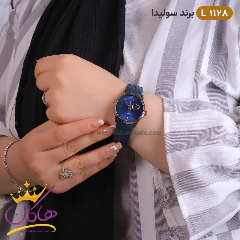 ساعت مچی ست زنانه و مردانه سولیدا سورمه ای کد 1128 زنانه روی دست