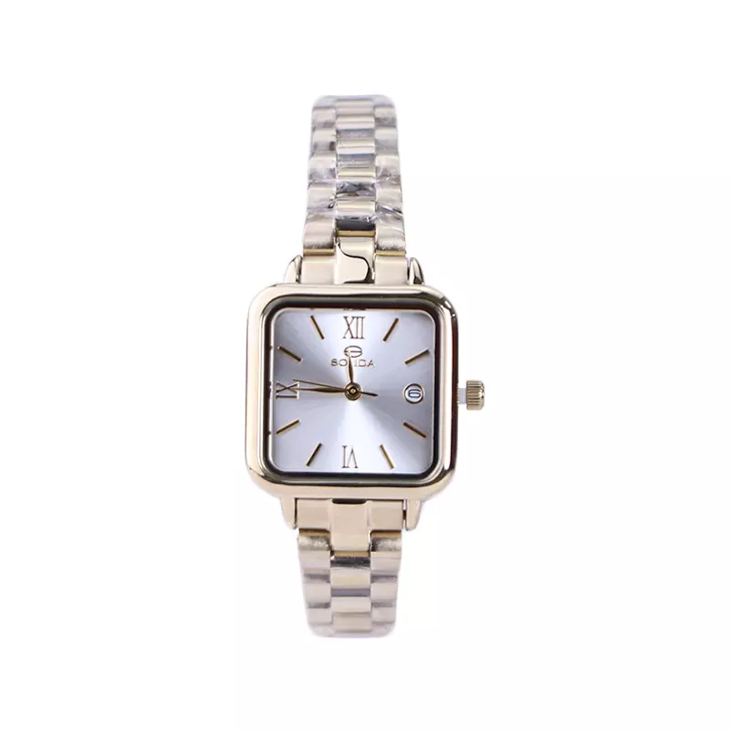 خرید ساعت مچی سولیدا زنانه فلزی قاب مربع طلایی 6112/5