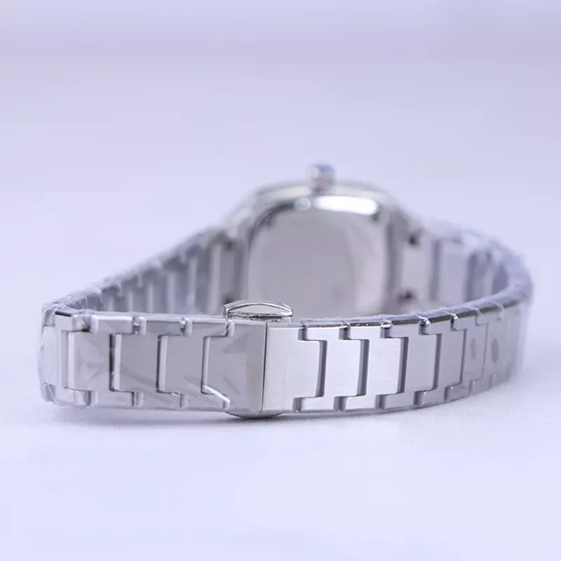 ساعت مچی سولیدا زنانه استیل نقرهای ظاهری کلاسیک و جذاب دارد. این ساعت استیل، رنگ ثابت و ضدحساسیت است. اصلیترین چیزی که در ساعت زنانه سولیدا توجه ما را به خود جلب میکند، قاب مربع شکل و صفحهی مشکی رنگ ساعت است. اندکسهای ساعت ترکیبی، عددی و لاتینی هستند و عقربههای آن شبنما هستند. یک مربع کوچک روی عدد 6 قرار دارد که همان تقویم ساعت است. اگر به درون صفحهی ساعت نگاه کنید، نام برند solida زیر ساعت 12 دیده میشود. در کنار صفحه یک پیچ کوک برای تنظیم زمان وجود دارد. بند ساعت، فلزی و از نوع استیل مرغوب است که باعث تعرق و خارش نمیشود. بند ساعت از بافت یکدستی تشکیل شده که نقرهای است. قفل آن از مدل پروانهای دکمهدار است که از دسته قفلهای محکم و مطمئن است.