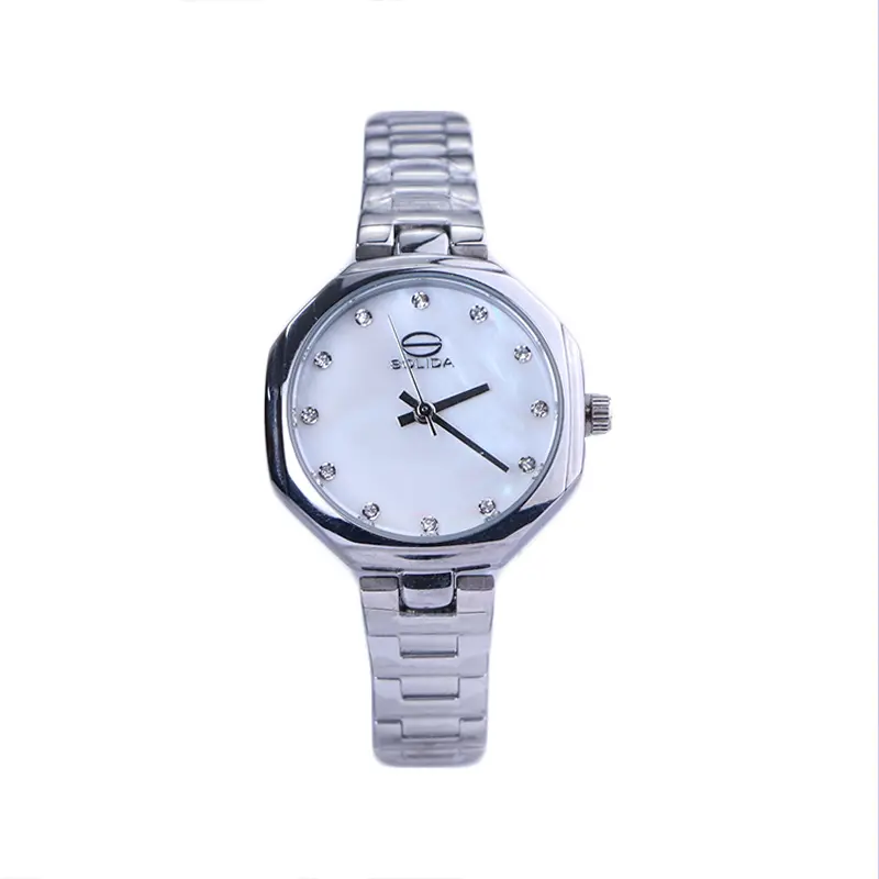 قفل ساعت مچی سولیدا زنانه فلزی نقره ای قاب شش ضلعی 5114/1