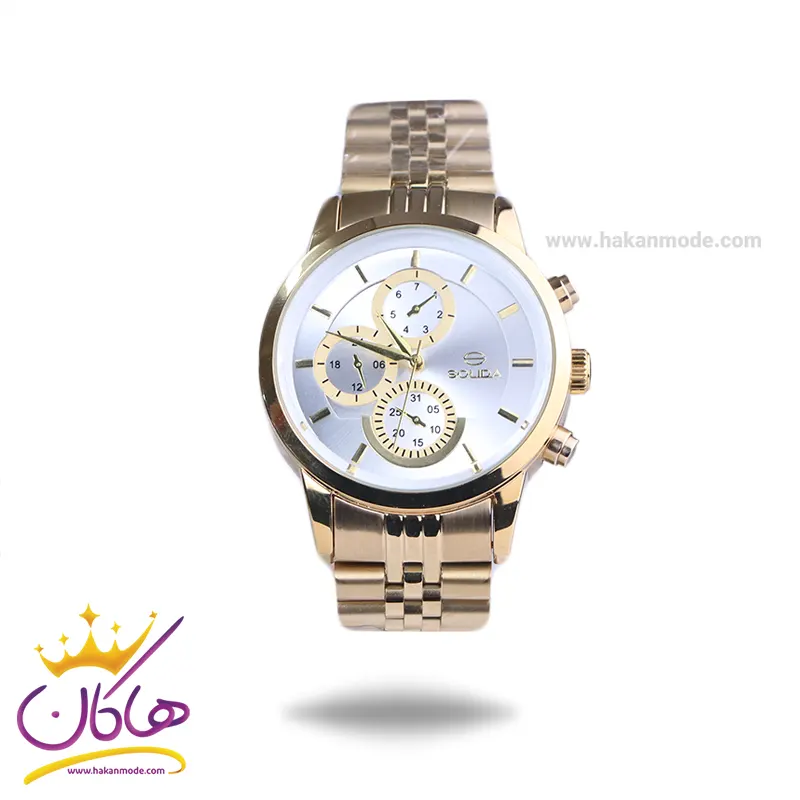 ویژگی ساعت مچی سولیدا مردانه فلزی طلایی فول دیت G2141/3