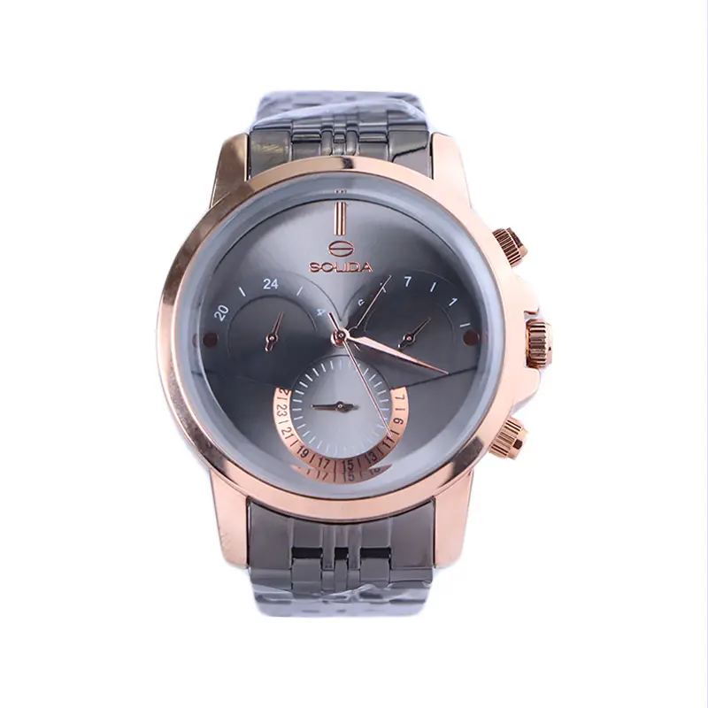 قیمت ساعت مچی سولیدا مردانه فلزی مشکی قاب رزگلد G 2142/12 در میان ساعتهای سطح بازار، اقتصادی و مناسب است. قیمت ساعت سولیدا مردانه باتوجه به کیفیت بالای استیل آن و داشتن موتور ژاپنی اصل و ضمانتنامه معتبر، گران نیست و در دسته ساعتهای مقرون بهصرفه قرار میگیرد. به طور کلی قیمت ساعت سه موتوره از ساعت تک موتوره بیشتر است. پس هنگام خرید ساعت عقربهای مردانه سولیدا توجه داشته باشید که چند عامل در تعیین قیمت ساعت مچی موثر است: