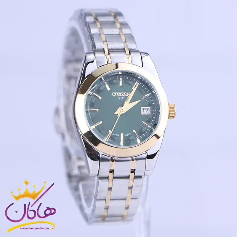 ساعت مچی سیتیزن زنانه فلزی نقره ای طلایی صفحه سبز L31624/6