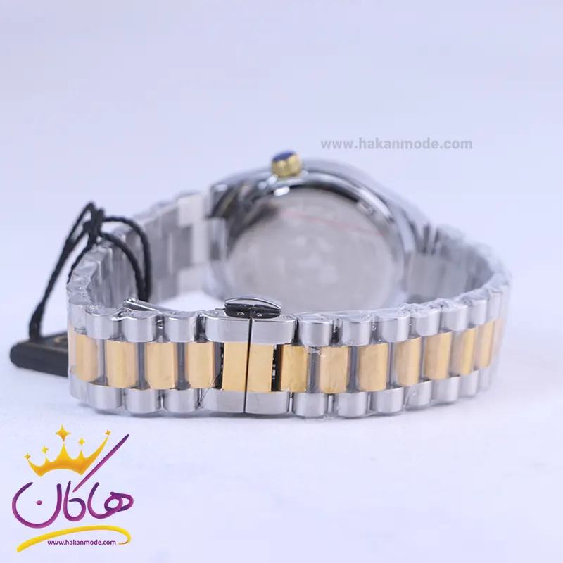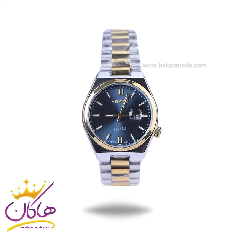 ساعت سیتیزن زنانه فلزی نقرهای طلایی ظاهری کلاسیک و جذاب دارد. این ساعت استیل، رنگ ثابت و ضدحساسیت است. اصلیترین چیزی که در ساعت زنانه سیتیزن توجه ما را به خود جلب میکند، همخوانی رنگ بند با قاب طلایی آن است. اگر به درون صفحهی سورمهای رنگ ساعت نگاه کنید، اندکسها خطی و عقربهها طلایی و شبنما هستند. تقویم کنار عدد 3 قرار گرفته است و با شیشه ذره بینی که دارد کاملا خوانا و واضح است. اگر به صفحه ساعت دقت کنید، نام برند سیتیزن زیر ساعت 12 دیده میشود. در کنار صفحه یک پیچ کوک برای تنظیم زمان وجود دارد. بند ساعت، فلزی و از نوع استیل مرغوب است که باعث تعرق و خارش نمیشود. طرح این بند از یک بافت یکدست تشکیل شده که قسمت میانی آن طلایی و کنارههای آن نقرهای رنگ است. قفل آن از مدل پروانه ای دکمهدار است که از دسته قفلهای محکم و مطمئن است.
