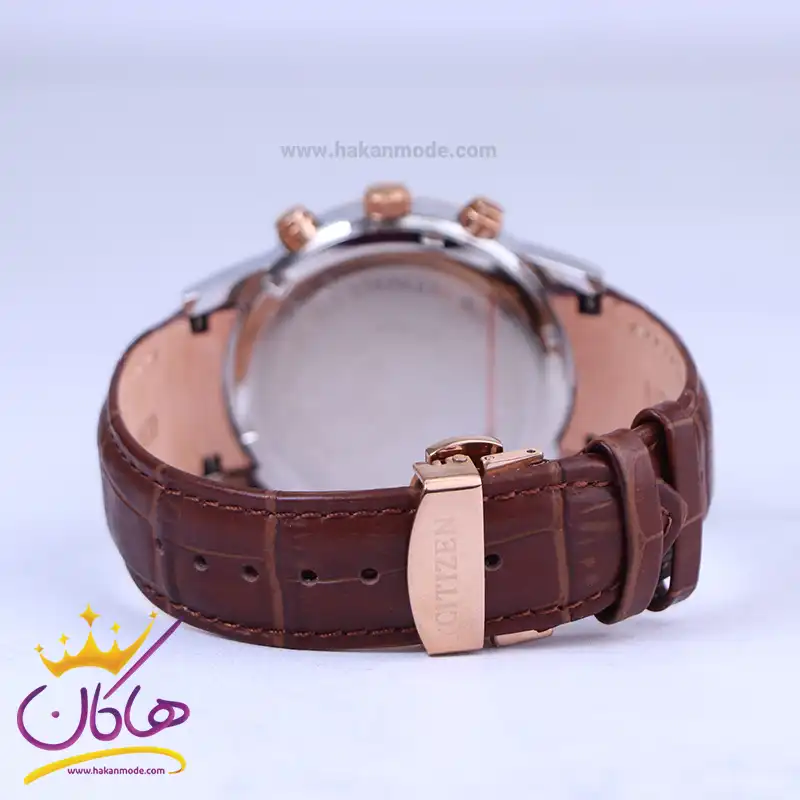 قفل ساعت مچی مردانه سیتیزن بند چرم صفحه قهوه ای کرنوگراف G8111/3