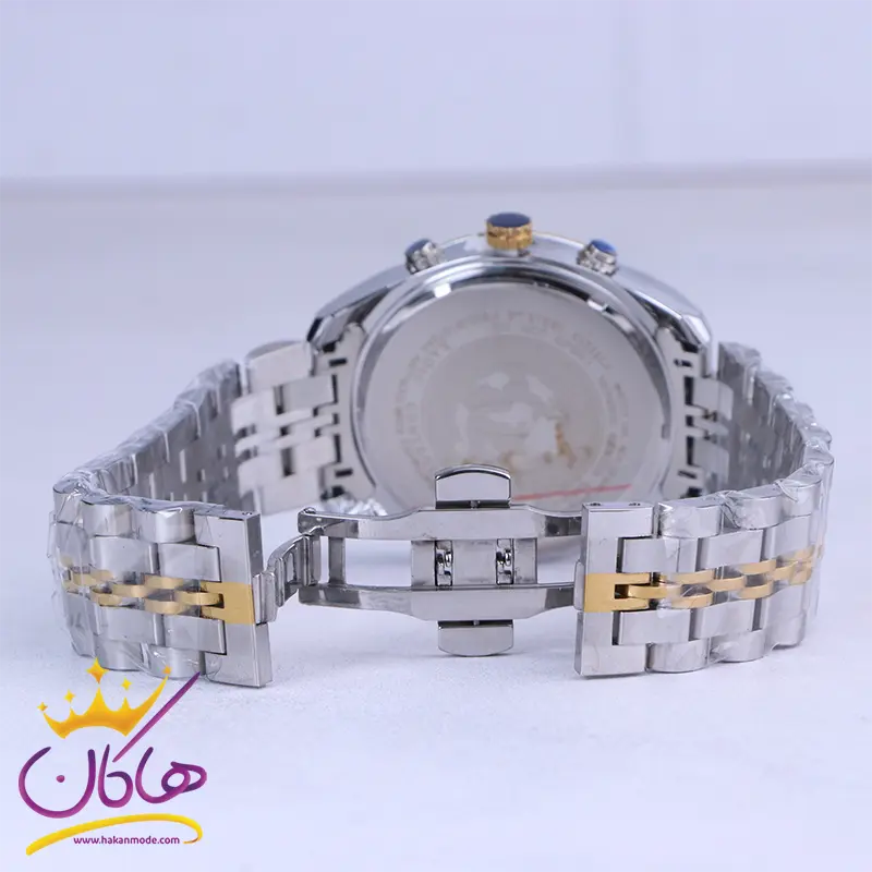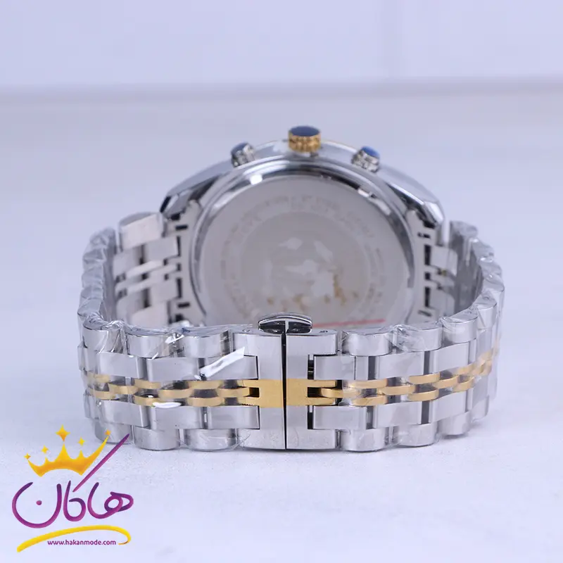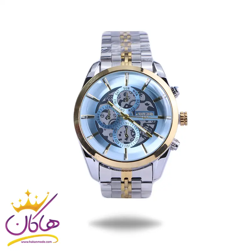 ساعت مچی سیتیزن مردانه فلزی ظاهری مدرن و جذاب دارد. این ساعت استیل نقرهای طلایی، رنگ ثابت و ضدحساسیت است. در واقع این ساعت، طرح سه موتوره است و صفحات کوچکی که میبینید، نمایشی هستند. عقربهها، شبنما و اندکسها خطی و شبنما هستند. اگر به درون صفحه آبی رنگ ساعت نگاه کنید، نام برند Citizen کنار ساعت 3 دیده میشود. یک مربع کوچک بین اعداد 4 و 5 قرار دارد که همان تقویم ساعت است. در مرکز صفحهی ساعت طرحی شبیه به چرخ دندههای ساعت مشاهده میکنید، این ساعت اتوماتیک نیست ولی طرح اتوماتیک است. در کنار صفحه یک پیچ کوک برای تنظیم زمان وجود دارد. بند ساعت، فلزی و از نوع استیل مرغوب است که باعث تعرق و خارش نمیشود. این بند از بافت ریز و درشت تشکیل شده که قسمت میانی طلایی رنگ و کنارههای آن نقرهای رنگ است. قفل ساعت از مدل پروانهای دکمهدار است که از دسته قفلهای محکم و مطمئن است.