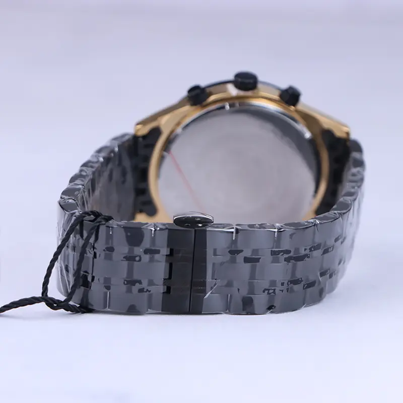 ساعت مچی سیتیزن مردانه فلزی ظاهری مدرن و جذاب دارد. این ساعت استیل مشکی/طلایی، رنگ ثابت و ضدحساسیت است. در واقع این ساعت، طرح سه موتوره است و صفحات کوچکی که می‌بینید، نمایشی هستند. عقربه‌ها، شبنما و اندکس‌ها خطی و طلایی هستند. اگر به درون صفحه مشکی ساعت نگاه کنید، نام برند Citizen کنار ساعت 3 دیده می‌شود. یک مربع کوچک کنار اعداد 4 و 5 قرار دارد که همان تقویم ساعت است. در کنار صفحه یک پیچ کوک برای تنظیم زمان وجود دارد. بند ساعت، فلزی و از نوع استیل مرغوب است که باعث تعرق و خارش نمی‌شود. این بند از بافت ریز و درشت تشکیل شده که مشکی رنگ است. قفل ساعت از مدل پروانه‌ای دکمه‌دار است که از دسته قفل‌های محکم و مطمئن است.