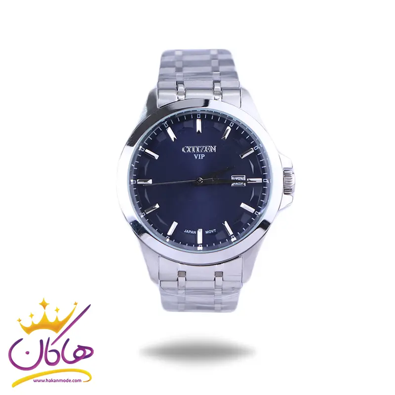 ساعت مچی سیتیزن مردانه فلزی ظاهری کلاسیک و جذاب دارد. این ساعت استیل نقرهای، رنگ ثابت و ضدحساسیت است. اصلیترین چیزی که در ساعت مردانه سیتیزن توجه ما را به خود جلب میکند، صفحهی سرمهای رنگ ساعت است. قاب ساعت به شکل گرد و نقرهای است. عقربهها نقرهای و اندکسهای ساعت خطی هستند. در کنار موقعیت ساعت 3 یک مربع کوچک وجود دارد که نشان دهندهی تقویم ساعت است. اگر به درون صفحه نگاه کنید، نام برند سیتیزن زیر ساعت 12 دیده میشود. در کنار صفحه یک پیچ کوک برای تنظیم زمان وجود دارد. بند ساعت، فلزی و از نوع استیل مرغوب است که باعث تعرق و خارش نمیشود. طرح این بند از یک بافت ریز و درشت تشکیل شده که نقرهای است و قفل آن از مدل پروانهای دکمهدار است که از دسته قفلهای محکم و مطمئن است.