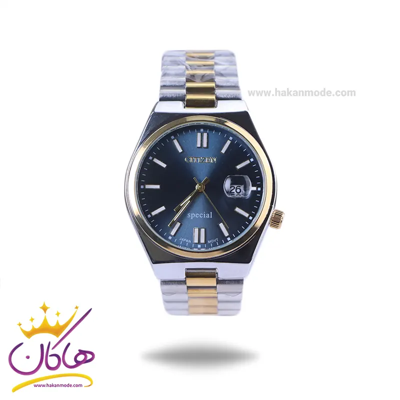 بهترین قیمت ساعت سیتیزن مردانه استیل نقره ای طلایی صفحه سورمه ای