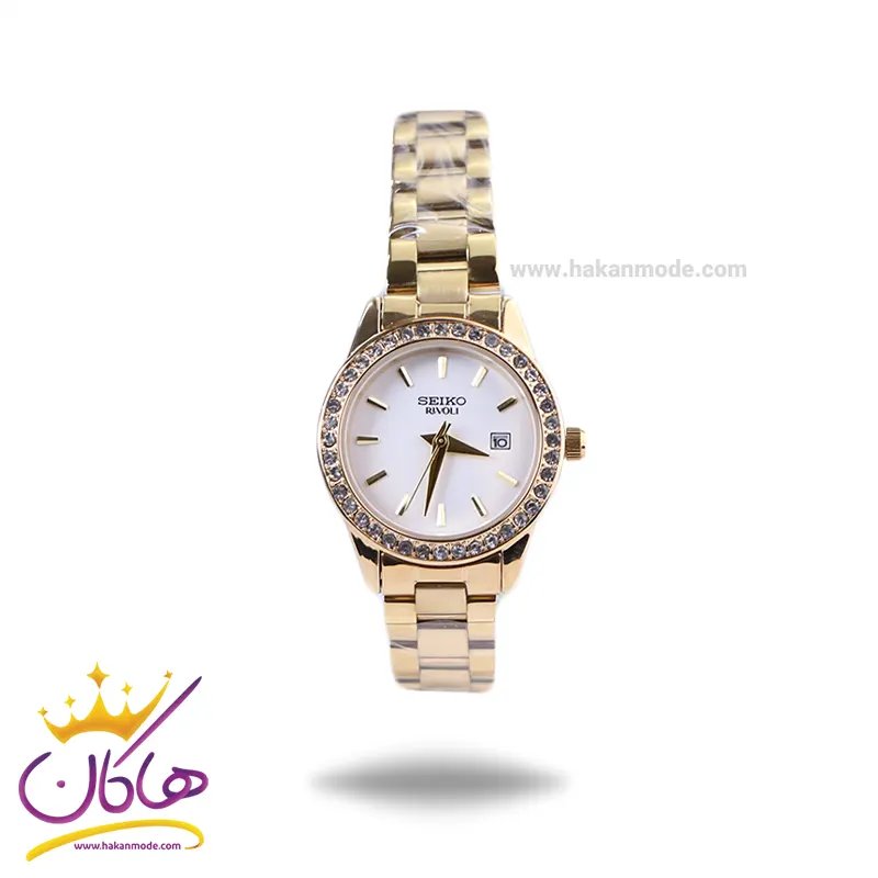 قفل ساعت مچی سیکو زنانه فلزی طلایی قاب نگین دار GN 059/22