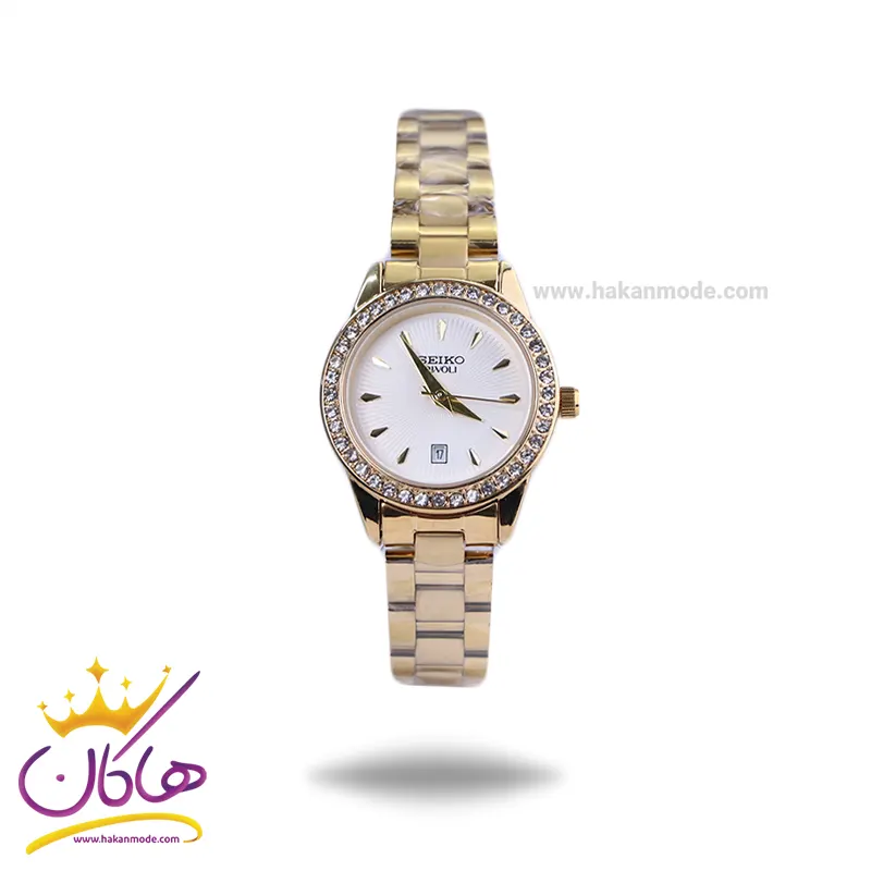 قفل ساعت مچی سیکو فلزی طلایی قاب نگین دار زنانه GN 059/44
