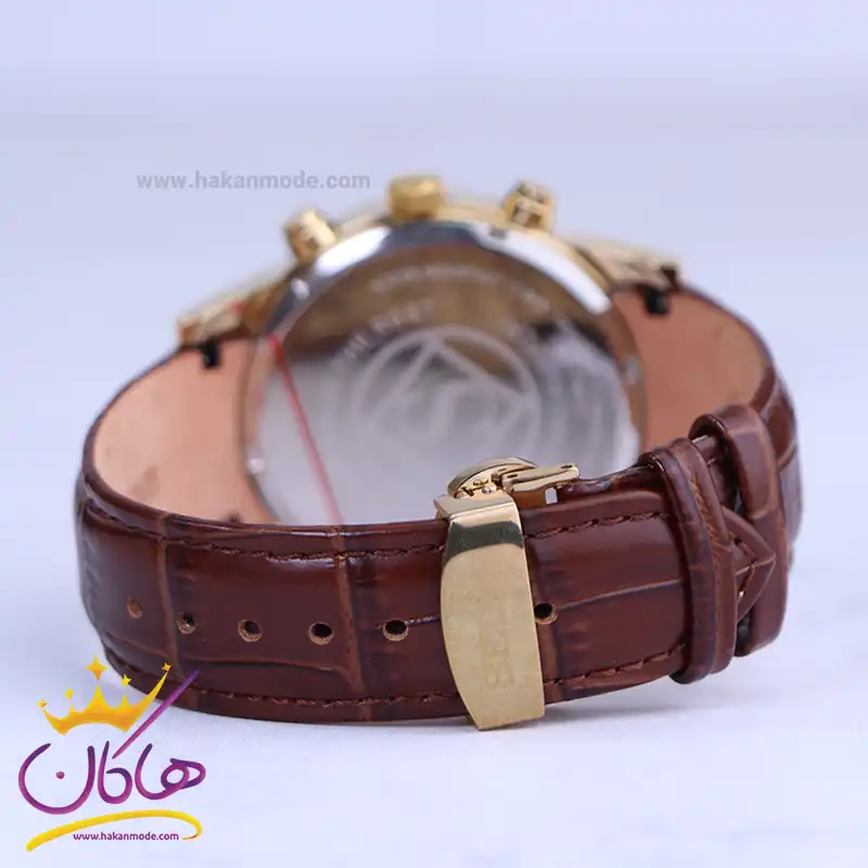 ساعت سیکو مردانه بند چرم قهوهای ظاهری کلاسیک و جذاب دارد. قاب ساعت استیل طلایی، رنگ ثابت و ضدحساسیت است. علاوه بر ویژگیهای ظاهری اگر به داخل ساعت نگاه کنید، سه صفحهی دایرهای کوچک میبینید که هر کدام نشان دهندهی پارامتری خاص هستند. یک صفحه نشانگر ثانیه شمار است. دایرهی سمت چپی تایم دقیقه کرنوگراف را نشان میدهد و دایرهی سمت راست، زمان را به صورت 24 ساعت نشان میدهد. داشتن اندکسهای خطی و عقربههای شب رنگ به شما این امکان را میدهد که در شب و محیطهای کم نور هم گذر زمان را ببینید. یک مربع کوچک بین عدد 4 و 5 قرار دارد که نشاندهندهی تقویم ساعت است. یک سری عدد دور تا دور قاب ساعت وجود دارد که برای تاچیمتر( سرعت سنج) است. از ساعتهای تاچیمتر میتوانید در تمام محاسباتتان استفاده نمایید. در کنار این ساعت بند چرم یک پین (دسته کوک) و دو دکمه قرار دارد که پین برای تنظیم تقویم و ساعت است. قفل این ساعت از نوع پروانهای دکمهدار است و ساعت به راحتی از دست نمیافتد. اگر به درون صفحه سفید ساعت نگاه کنید، نام برند سیکو زیر ساعت 12 دیده میشود. بند ساعت از نوع چرم مرغوب که پوسته پوسته و بریده نمیشود. این بند باعث تعرق و خارش نمیشود.