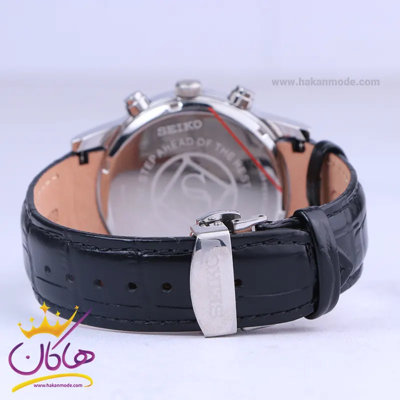 ساعت سیکو مردانه بند چرم مشکی ظاهری کلاسیک و جذاب دارد. قاب ساعت استیل نقرهای، رنگ ثابت و ضدحساسیت است. علاوه بر ویژگیهای ظاهری اگر به داخل ساعت نگاه کنید، سه صفحهی دایرهای کوچک میبینید که هر کدام نشان دهندهی پارامتری خاص هستند. یک صفحه نشانگر ثانیه شمار است. دایرهی سمت چپی تایم دقیقه کرنوگراف را نشان میدهد و دایرهی سمت راست، زمان را به صورت 24 ساعت نشان میدهد. داشتن اندکسهای خطی و عقربههای شب رنگ به شما این امکان را میدهد که در شب و محیطهای کم نور هم گذر زمان را ببینید. یک مربع کوچک بین عدد 4 و 5 قرار دارد که نشاندهندهی تقویم ساعت است. یک سری عدد دور تا دور قاب ساعت وجود دارد که برای تاچیمتر( سرعت سنج) است. از ساعتهای تاچیمتر میتوانید در تمام محاسباتتان استفاده نمایید. در کنار این ساعت بند چرم یک پین (دسته کوک) و دو دکمه قرار دارد که پین برای تنظیم تقویم و ساعت است. قفل این ساعت از نوع پروانهای دکمهدار است و ساعت به راحتی از دست نمیافتد. اگر به درون صفحه مشکی ساعت نگاه کنید، نام برند سیکو زیر ساعت 12 دیده میشود. بند ساعت از نوع چرم مرغوب که پوسته پوسته و بریده نمیشود. این بند باعث تعرق و خارش نمیشود.