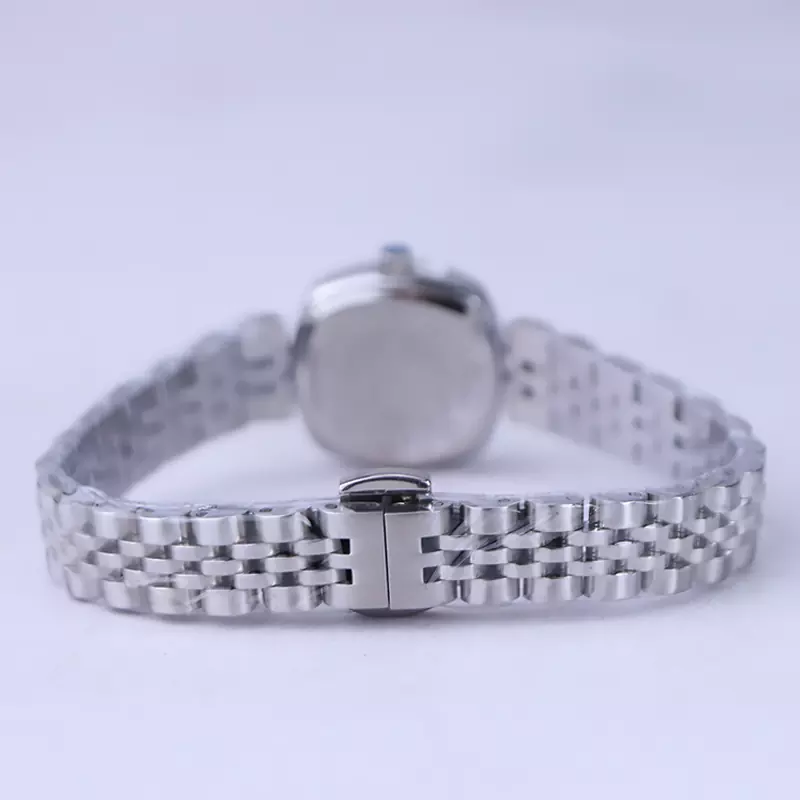 ساعت مچی الگانس زنانه استیل نقرهای ظاهری کلاسیک و جذاب دارد. این ساعت استیل، رنگ ثابت و ضدحساسیت است. اصلیترین چیزی که در ساعت زنانه الگانس توجه ما را به خود جلب میکند، قاب مربع شکل و صفحهی کج ساعت است که ظاهر ساعت را شیک و متفاوت کرده است. صفحهی ساعت نقرهای رنگ است و عقربهها، نقرهای و بدون اندکس است. اگر به درون صفحهی ساعت نگاه کنید، نام برند الگانس زیر ساعت 12 دیده میشود. در کنار صفحه یک پیچ کوک برای تنظیم زمان وجود دارد. بند ساعت، فلزی و از نوع استیل مرغوب است که باعث تعرق و خارش نمیشود. بند ساعت طرح رولکسی است و قفل آن از مدل پروانهای دکمهدار است که از دسته قفلهای محکم و مطمئن است.