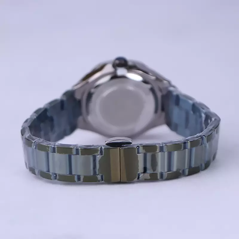 ساعت مچی الگانس زنانه استیل سبز ظاهری کلاسیک و جذاب دارد. این ساعت استیل، رنگ ثابت و ضدحساسیت است. اصلیترین چیزی که در ساعت زنانه الگانس توجه ما را به خود جلب میکند، قاب گرد و صفحهی سبز رنگ آینهای ساعت است که ظاهر ساعت را شیک و متفاوت کرده است. عقربهها، نقرهای و بدون اندکس است. اگر به درون صفحهی ساعت نگاه کنید، نام برند الگانس زیر ساعت 12 دیده میشود. در کنار صفحه یک پیچ کوک برای تنظیم زمان وجود دارد. بند ساعت، فلزی و از نوع استیل مرغوب است که باعث تعرق و خارش نمیشود. بند ساعت از بافت یکدست تشکیل شده سبز رنگ است و قفل آن از مدل پروانهای دکمهدار است که از دسته قفلهای محکم و مطمئن است.