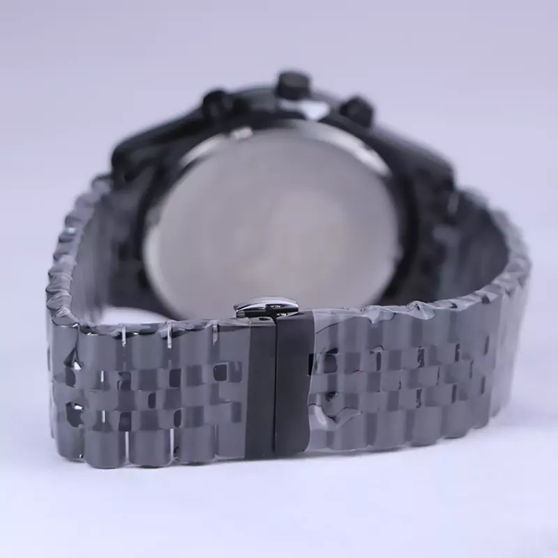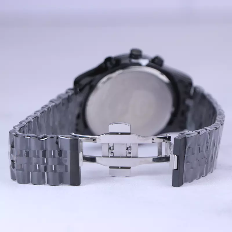 ساعت مچی مردانه فلزی الگانس پریمیر ظاهری مدرن و جذاب دارد. این ساعت استیل مشکی، رنگ ثابت و ضدحساسیت است. در واقع این ساعت، طرح سه موتوره است و صفحات کوچکی که میبینید، نمایشی هستند. اگر به درون صفحه مشکی رنگ ساعت نگاه کنید، اندکسهای ساعت به صورت خطی شبنما و عقربهها شبنما طراحی شدهاند. یک مربع کوچک کنار عدد 6 قرار دارد که تقویم ساعت است. نام برند الگانس پریمیر زیر ساعت 12 دیده میشود. در کنار صفحه یک پیچ کوک و دو دکمه برای تنظیم زمان وجود دارد. بند ساعت، فلزی و از نوع استیل مرغوب است که باعث تعرق و خارش نمیشود. طرح این بند از یک بافت ریز و درشت تشکیل شده و مشکی رنگ است و قفل آن از مدل پروانه ای دکمهدار است که از دسته قفلهای محکم و مطمئن است.