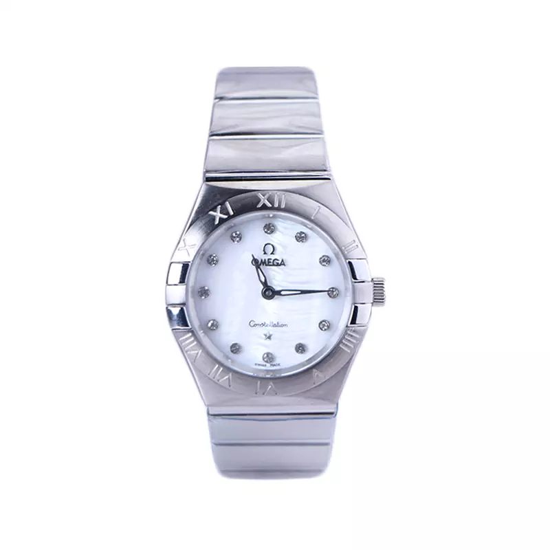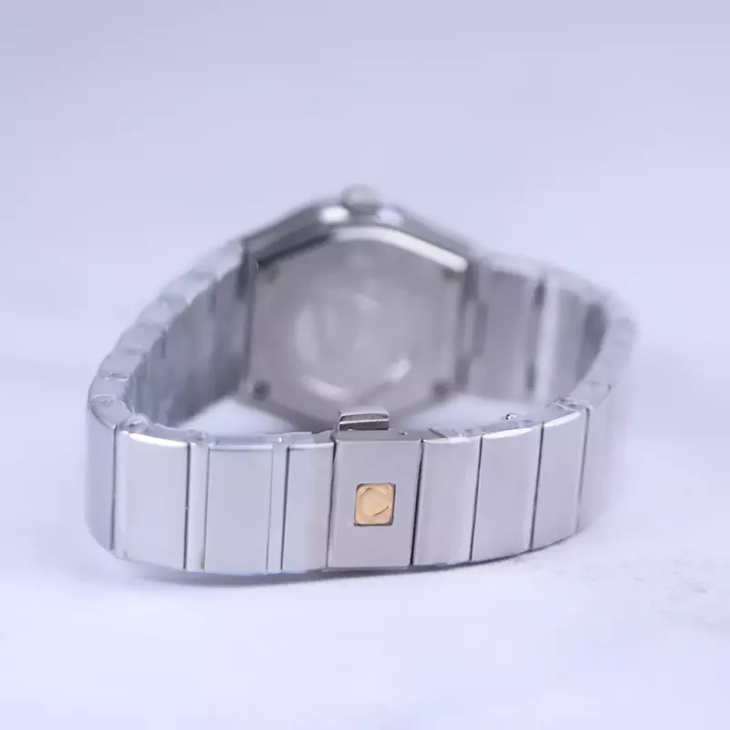 ساعت امگا زنانه فلزی ظاهری کلاسیک و جذاب دارد. این ساعت عقربهای زنانه استیل نقرهای، رنگ ثابت و ضدحساسیت است. اصلی ترین چیزی که در ساعت اومگا کانسلکشن توجه ما را به خود جلب میکند، همنشینی رنگ بند و قاب نقرهای ساعت است. اندکسهای این ساعت به صورت نگینی هستند. اگر به درون صفحه سفید رنگ ساعت نگاه کنید، نام برند امگا زیر ساعت 12 دیده میشود. در کنار صفحه یک پیچ کوک برای تنظیم زمان وجود دارد. بند ساعت، فلزی و از نوع استیل مرغوب است که باعث تعرق و خارش نمیشود. طرح این بند از یک بافت یکدست تشکیل شده که نقرهای است. قفل آن از مدل پروانهای دکمهدار است که از دسته قفلهای محکم و مطمئن است.