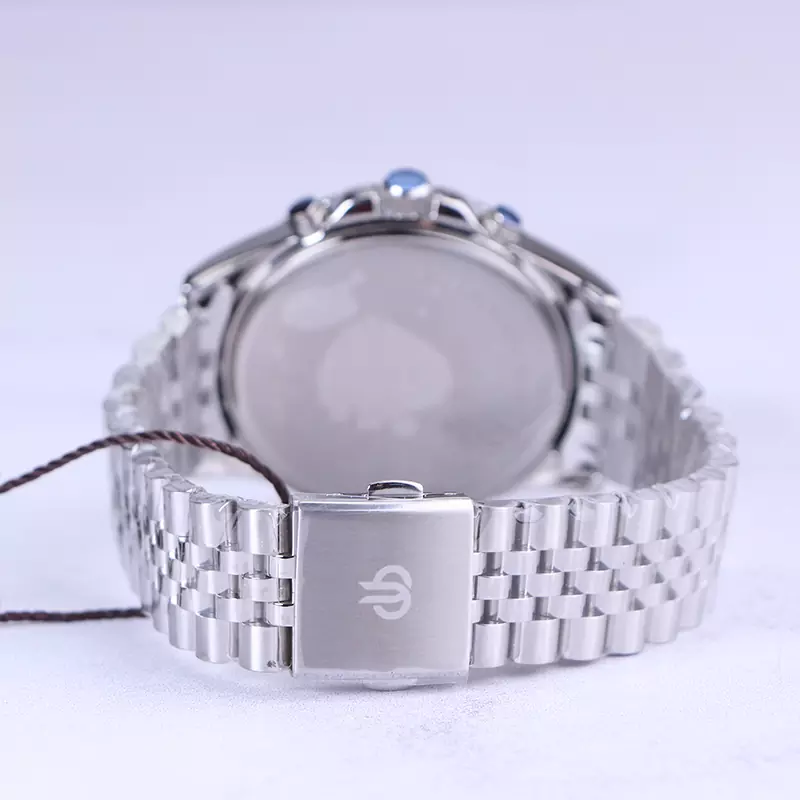 ساعت بیگوتی مردانه فلزی ظاهری مدرن و جذاب دارد. این ساعت استیل نقره‌ای، رنگ ثابت و ضدحساسیت است. اگر به داخل ساعت نگاه کنید، صفحه‌ی این ساعت به رنگ مشکی است و سه صفحه دایره‌ای نقره‌ای کوچک می‌بینید که هر کدام از آنها نشان دهنده‌ی پارامتری خاص هستند. یک صفحه که سمت چپ قرار دارد روز‌های هفته را نشان می‌دهد. صفحه‌ی سمت راست ساعت را به صورت 24 ساعته نشان می‌دهد. اگر از افرادی هستید که امور خود را بر اساس تایم 24 ساعته تنظیم می‌کنید این صفحه کوچک به کار شما می‌آید. صفحه‌ی پایینی، dual time یا دو زمانه است. ساعت دو زمانه ساعتی است که به طور هم زمان می‌تواند دو زمان مختلف مربوط به دو منطقه متفاوت را نمایش دهد. به صورتی که می‌توانید با داشتن این ساعت زمان دو کشور متفاوت را در صفحه‎‌ی این ساعت داشته باشید. یک مربع کوچک بین اعداد 4 و 5 قرار دارد که همان تقویم ساعت است. بند ساعت، از بافت یکدستی تشکیل شده و از نوع فلز مرغوب است که باعث تعرق و خارش نمی‌شود. اندکس‌های این ساعت به صورت خطی نقره‌ای و عقربه‌های آن نقره‌ای طراحی شده‌اند. لوگوی برند بیگوتی را زیر عدد 12 می‌بینید. قفل این ساعت از نوع دوتکه دکمه‌دار است. در کنار صفحه یک پیچ کوک و دو دکمه برای تنظیم زمان وجود دارد.