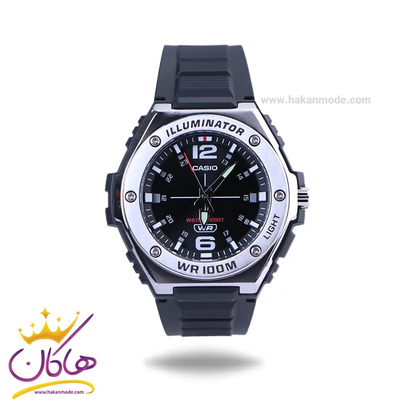 قفل ساعت مچی عقربه ای کاسیو مردانه بند رابر صفحه مشکی MWA-100H-1AVDF