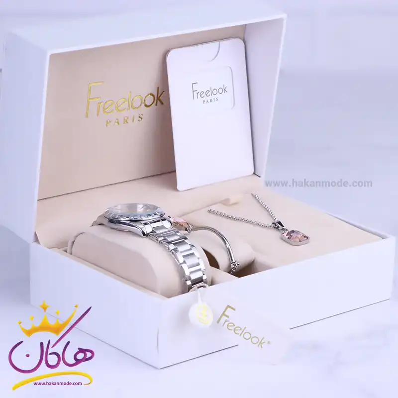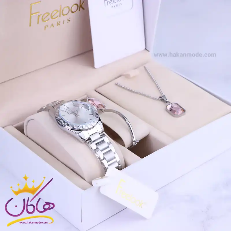 ست سرویس و ساعت مچی زنانه فلزی فری لوک نقره ای FL.1.10400/1