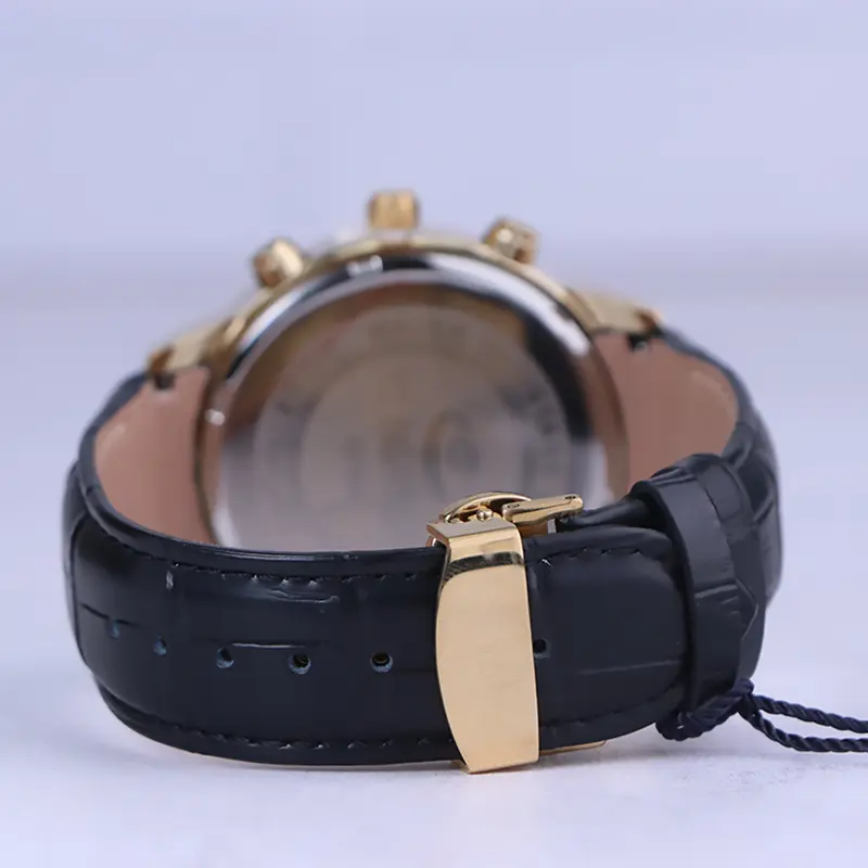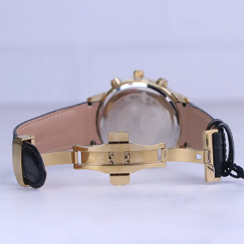 نمای باز ساعت مچی مردانه الگانس قاب طلایی چرم مشکی G 1236/2