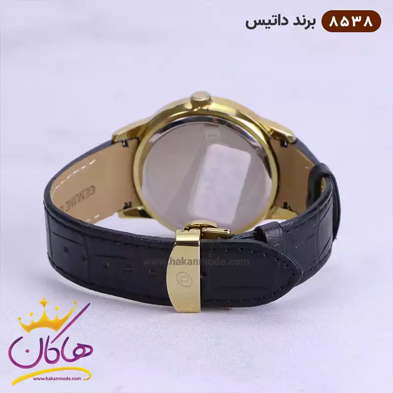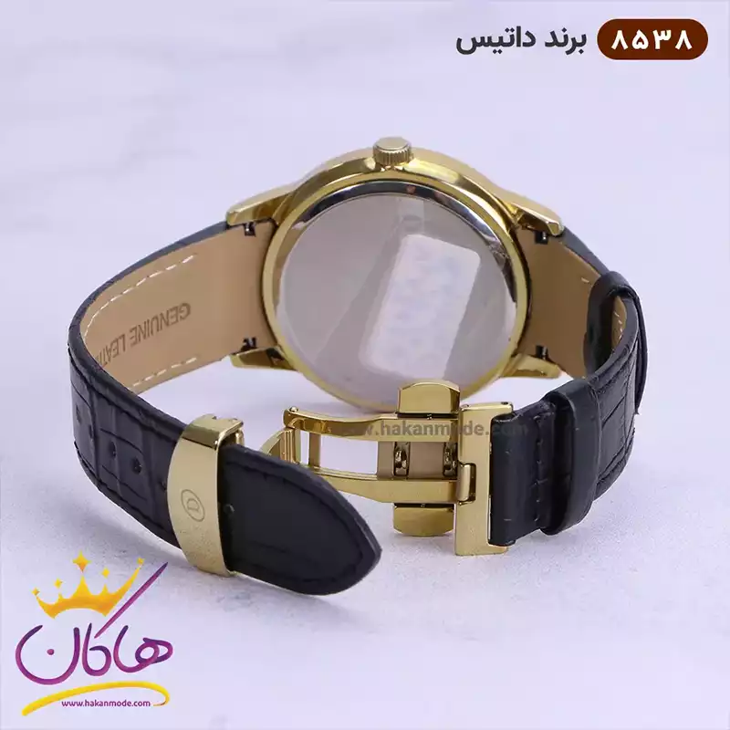 قفل ساعت مچی مردانه داتیس بند چرمی قاب طلایی 8538/7