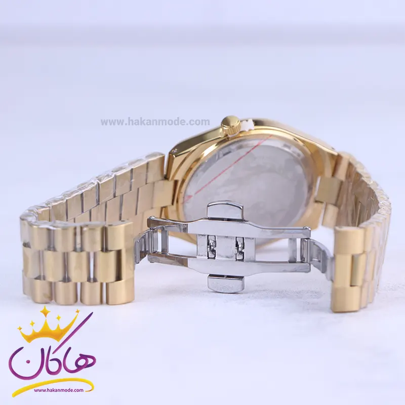 ساعت سیتیزن مردانه فلزی طلایی ظاهری کلاسیک و جذاب دارد. این ساعت استیل طلایی، رنگ ثابت و ضدحساسیت است. اصلیترین چیزی که در ساعت مردانه سیتیزن توجه ما را به خود جلب میکند، همخوانی رنگ بند با قاب طلایی آن است. اگر به درون صفحهی سبز رنگ ساعت نگاه کنید، اندکسها خطی و عقربهها طلایی و شبنما هستند. تقویم کنار عدد 3 قرار گرفته است و با شیشه ذره بینی که دارد کاملا خوانا و واضح است. اگر به صفحه ساعت دقت کنید، نام برند سیتیزن زیر ساعت 12 دیده میشود. در کنار صفحه یک پیچ کوک برای تنظیم زمان وجود دارد. بند ساعت، فلزی و از نوع استیل مرغوب است که باعث تعرق و خارش نمیشود. طرح این بند از یک بافت یکدست تشکیل شده است و قفل آن از مدل پروانه ای دکمهدار است که از دسته قفلهای محکم و مطمئن است.