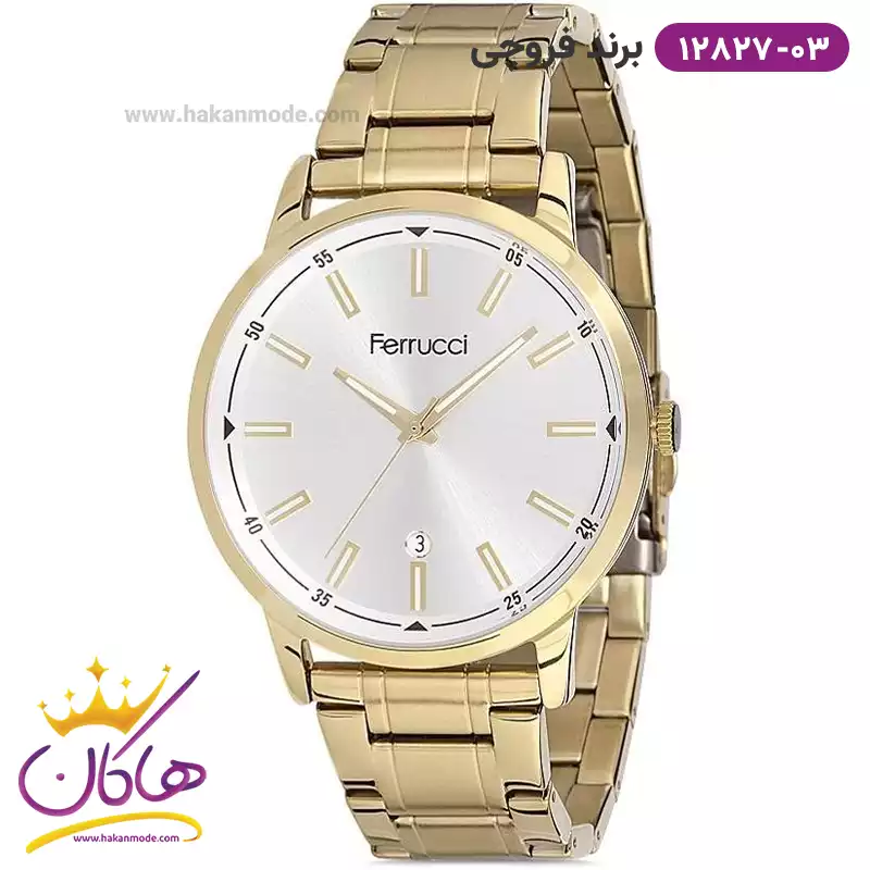 ساعت مچی مردانه فروچی تمام طلایی صفحه سفید 12827M.03
