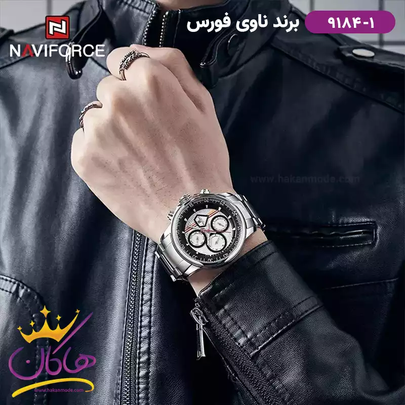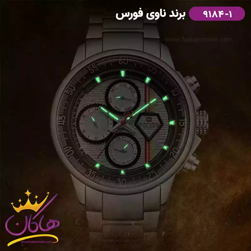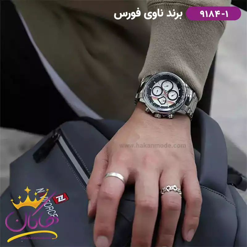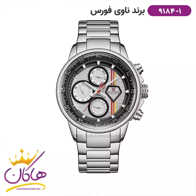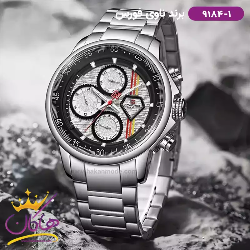 ساعت مچی مردانه نیوی فورس فلزی نقره ای فول دیت 9184/1
