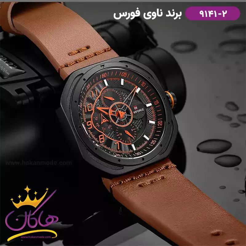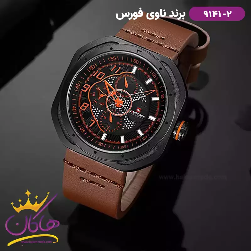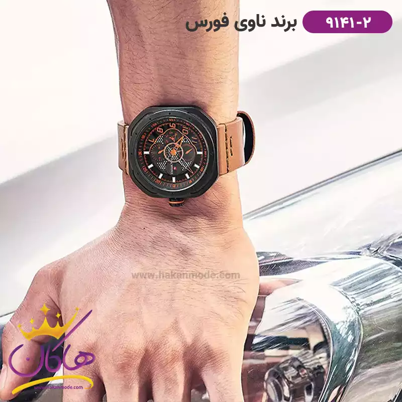 ساعت مردانه نیوی فورس بند چرم قهوه ای قاب مربع 9141/2