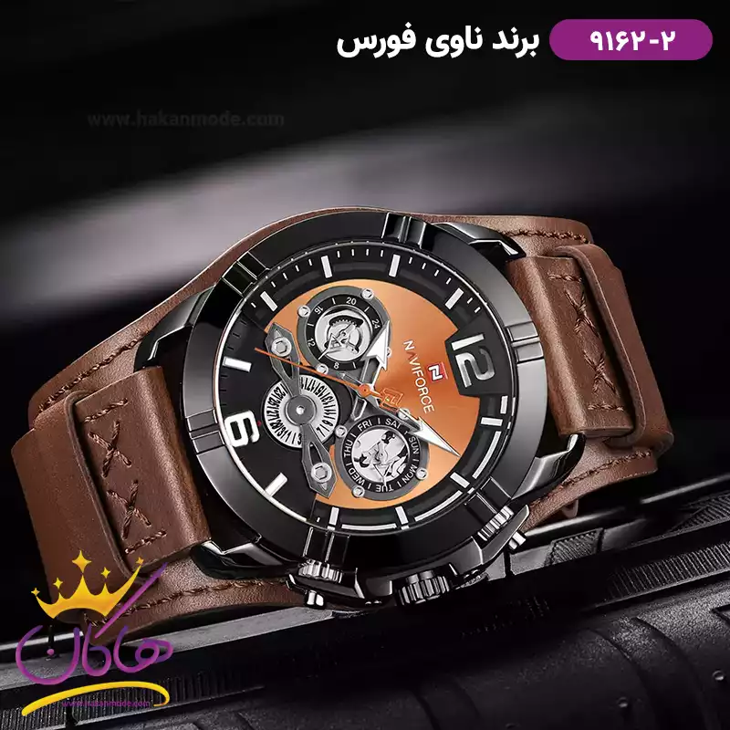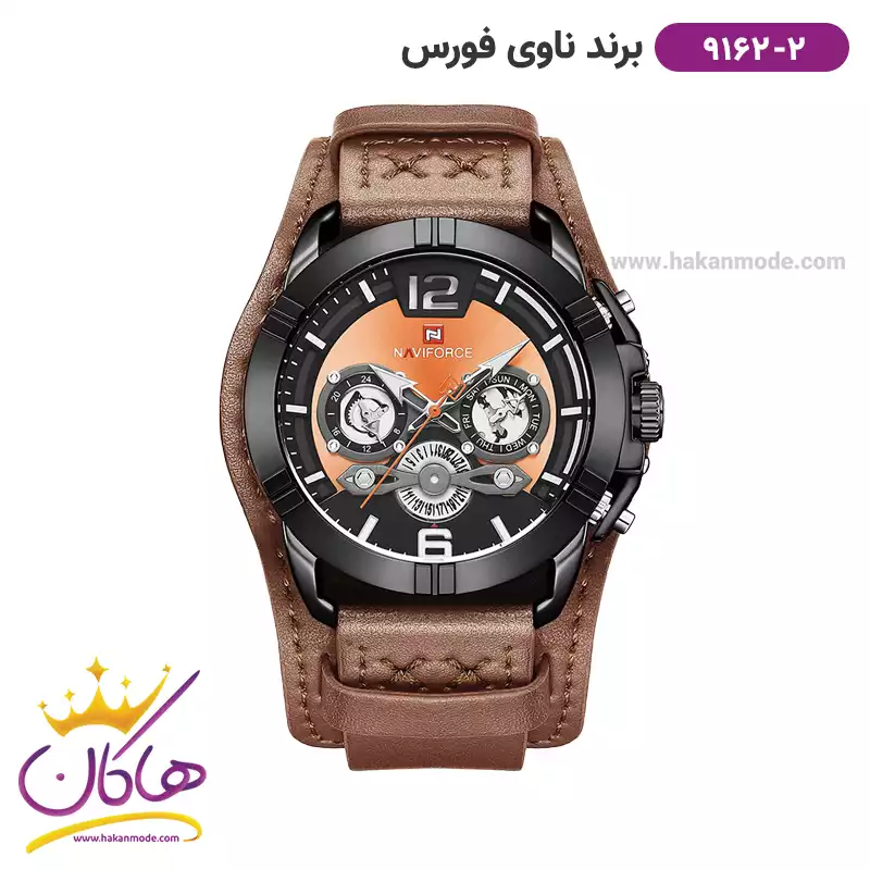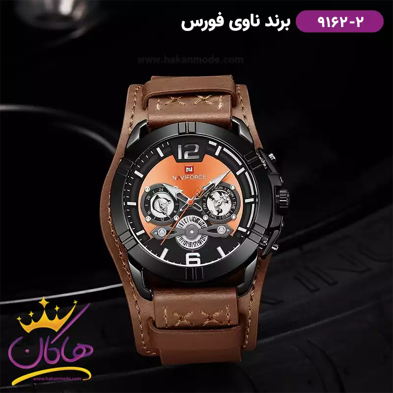 ساعت مچی مردانه نیوی فورس بند چرم قهوه ای قاب مشکی 9162/2