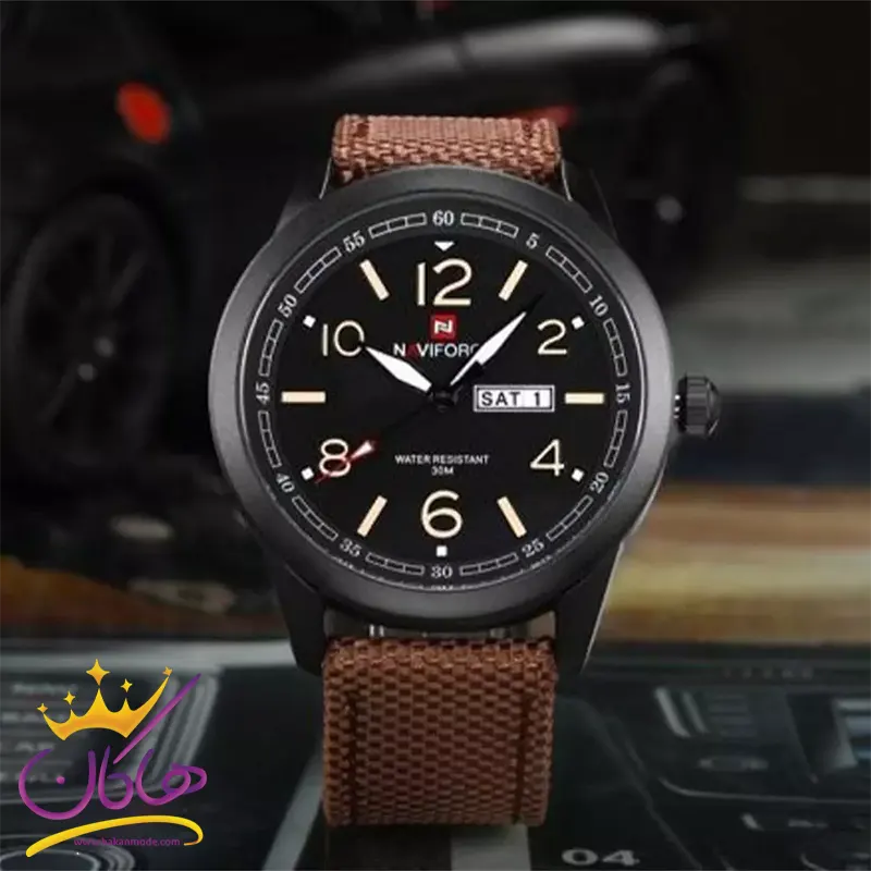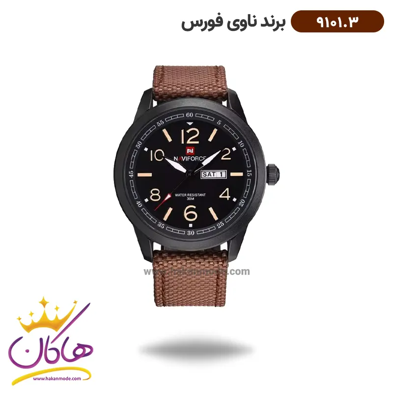 ویژگی ساعت مچی مردانه نیوی فورس بند برزنت قهوه ای 9101/3