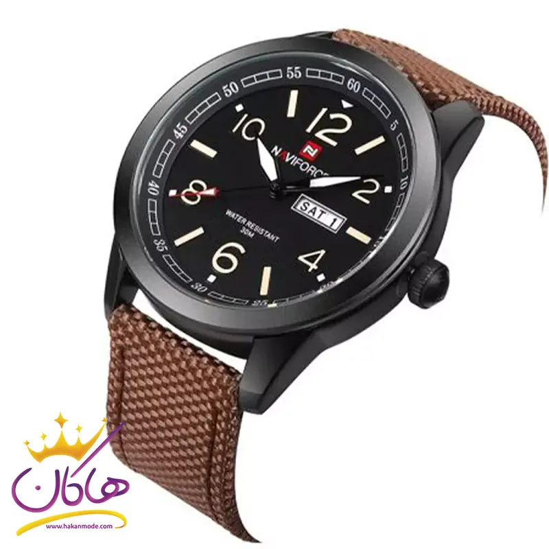 بهترین قیمت ساعت نیوی فورس مردانه بند برزنت قهوه‌ای