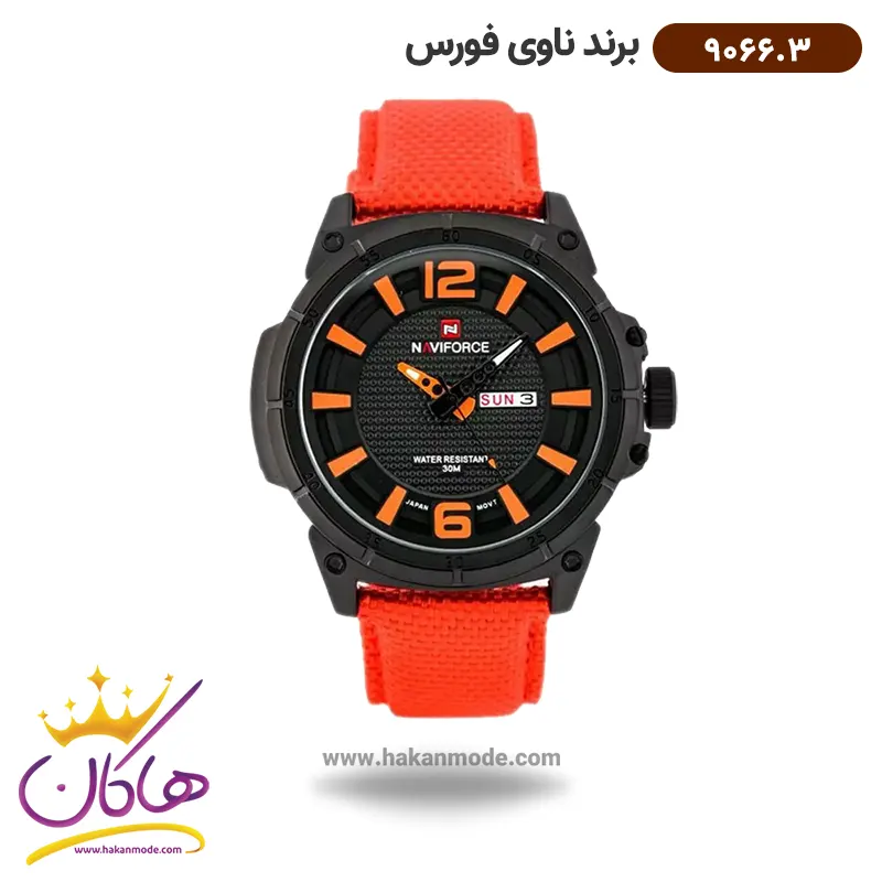 خرید ساعت مچی مردانه نیوی فورس بند برزنت نارنجی 9066/3