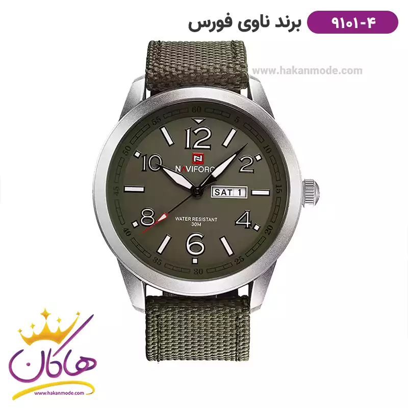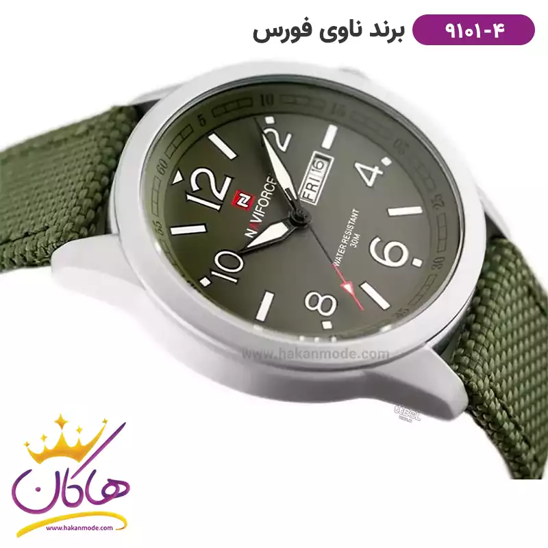 ویژگی ساعت مچی مردانه نیوی فورس بند برزنت سبز 9101/4