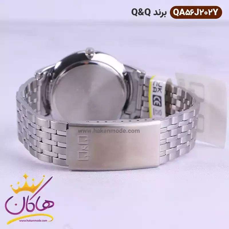 علاوه بر ویژگی های ظاهری باید گفت این ساعت تک موتوره است و چون موتور تمام انرژی خود را فقط صرف چرخاندن عقربه ها می کند، هم موتور و هم باتری طول عمر بیشتری دارند. اگر به داخل ساعت نگاه کنید صفحه سورمه ای یکدست با اندکسهای خطی نقره ای نظر شما را جلب می کند. لوگوی برند Q&Q زیر عدد 12 و یک نوشته کوتاه بالای عدد 6 تنها تزیین این ساعت هستند. عقربه های ساده نقره ای رنگ هم با اندکسها هماهنگ هستند. بند ساعت فلزی و از نوع استیل مرغوب است که باعث تعرق و خارش نمی شود. طرح این بند از یک بافت ریز و درشت تشکیل شده است. قفل این ساعت از مدل سه تکه است و ساعت به راحتی از دست نمیافتد. سادگی ساعت مچی مردانه کیو اند کیو نقره ای صفحه سورمه ای QA56J202Y یکی از دلایل شیکی آن است.