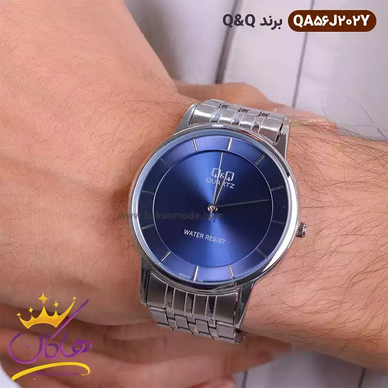 بهترین قیمت ساعت مچی مردانه کیو اند کیو نقره ای صفحه سورمه ای QA56J202Y