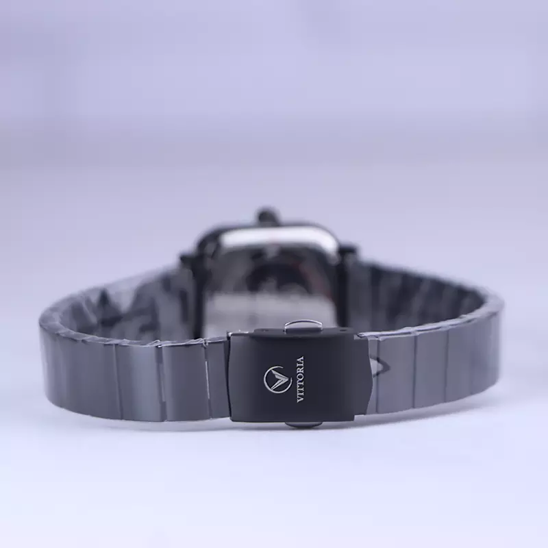 ساعت ویتوریا زنانه فلزی مشکی ظاهری کلاسیک و جذاب دارد. این ساعت عقربهای زنانه شیک استیل، رنگ ثابت و ضدحساسیت است. اصلیترین چیزی که در ساعت زنانه ویتوریا توجه ما را به خود جلب میکند، قاب مربع شکل و صفحهی مشکی رنگ ساعت است. اگر به داخل ساعت نگاه کنید این ساعت فقط 4 اندکس خطی دارد و عقربههای آن نقرهای هستند. نام برند ویتوریا زیر ساعت 12 دیده میشود. در کنار صفحه یک پیچ کوک برای تنظیم زمان وجود دارد. بند ساعت، از بافت یکدست تشکیل شده که مشکی رنگ است. همچنین جنس بند فلزی و از نوع استیل مرغوب است که باعث تعرق و خارش نمیشود. قفل آن از مدل دوتکه دکمهدار است که از دسته قفلهای محکم و مطمئن است.