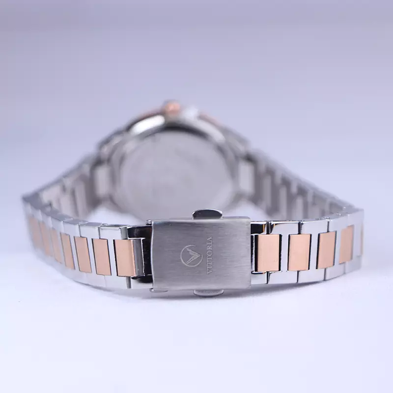قفل ساعت مچی ویتوریا زنانه فلزی نقره ای رزگلد صفحه گرد VT 3391/4