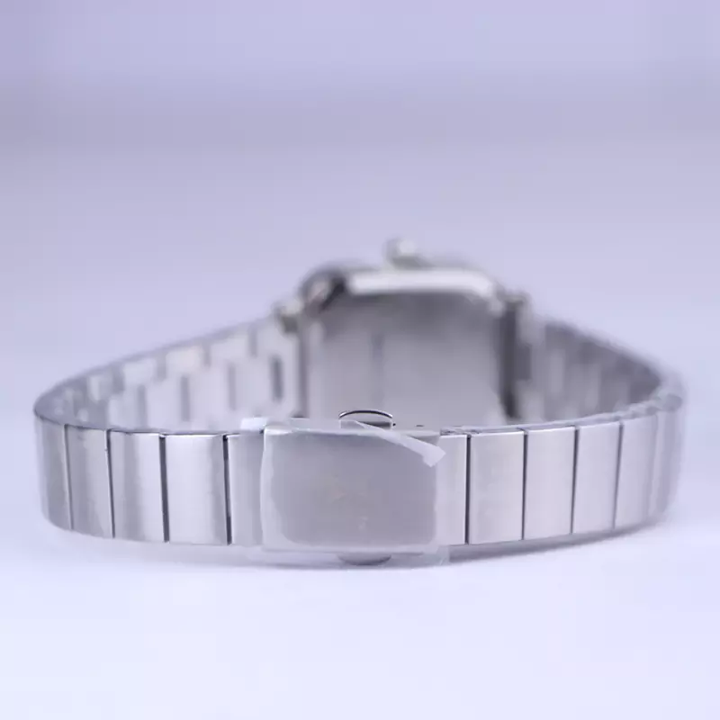 ساعت ویتوریا زنانه فلزی نقرهای ظاهری کلاسیک و جذاب دارد. این ساعت عقربهای زنانه شیک استیل، رنگ ثابت و ضدحساسیت است. اصلیترین چیزی که در ساعت زنانه ویتوریا توجه ما را به خود جلب میکند، قاب مربع شکل و صفحهی سفید رنگ ساعت است. اگر به داخل ساعت نگاه کنید این ساعت فقط 4 اندکس خطی دارد و عقربههای آن نقرهای هستند. نام برند ویتوریا زیر ساعت 12 دیده میشود. در کنار صفحه یک پیچ کوک برای تنظیم زمان وجود دارد. بند ساعت، از بافت یکدست تشکیل شده که نقرهای رنگ است. همچنین جنس بند فلزی و از نوع استیل مرغوب است که باعث تعرق و خارش نمیشود. قفل آن از مدل دوتکه دکمهدار است که از دسته قفلهای محکم و مطمئن است.