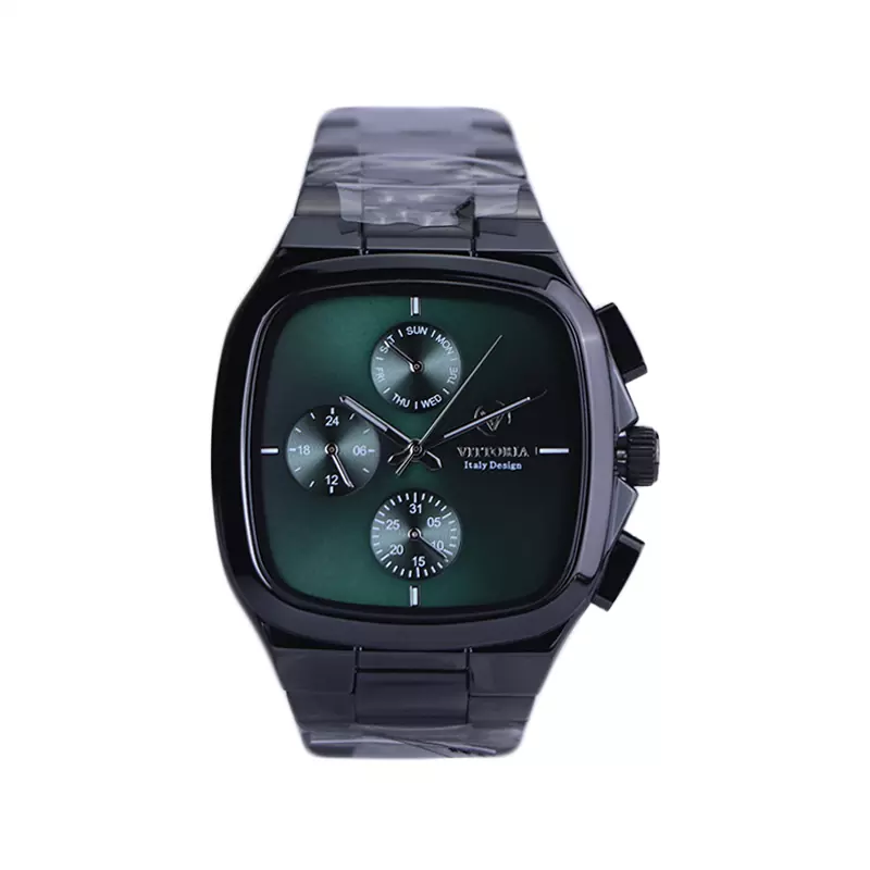 ویژگی ساعت مچی ویتوریا مردانه فلزی مشکی صفحه مربع سبز VT 3185/11