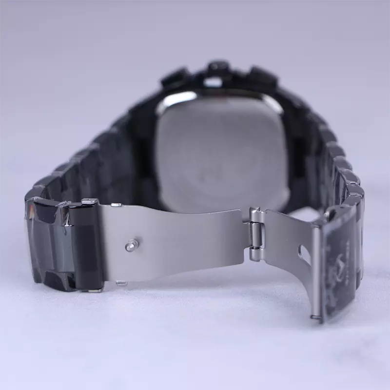 ساعت ویتوریا مردانه فلزی ظاهری مدرن و جذاب دارد. این ساعت استیل مشکی، رنگ ثابت و ضدحساسیت است. قاب ساعت مربع شکل و مشکی است. اگر به داخل ساعت نگاه کنید، صفحهی این ساعت به رنگ سبز و عقربههای آن شبنما است. اندکسهای این ساعت به صورت خطی و شبنما طراحی شدهاند. درون صفحه سه صفحه دایرهای کوچک میبینید که هر کدام از آنها نشان دهندهی پارامتری خاص هستند. یک صفحه که بالا قرار دارد روزهای هفته را نشان میدهد. صفحهی سمت چپ ساعت را به صورت 24 ساعته نشان میدهد. اگر از افرادی هستید که امور خود را بر اساس تایم 24 ساعته تنظیم میکنید این صفحه کوچک به کار شما میآید. صفحهی پایینی، همان تقویم ساعت است. بند ساعت، از بافت ریز و درشت تشکیل شده و از نوع فلز مرغوب است که باعث تعرق و خارش نمیشود. لوگوی برند ویتوریا را کنار عدد 3 میبینید. قفل این ساعت از نوع دوتکه دکمهدار است. در کنار صفحه یک پیچ کوک و دو دکمه برای تنظیم زمان وجود دارد.